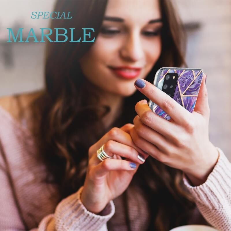 Θήκη προστασίας TPU με σχέδιο μαρμάρου και ηλεκτρολυτική επικάλυψη 3D για Samsung Galaxy S20 (Σκούρο μωβ)