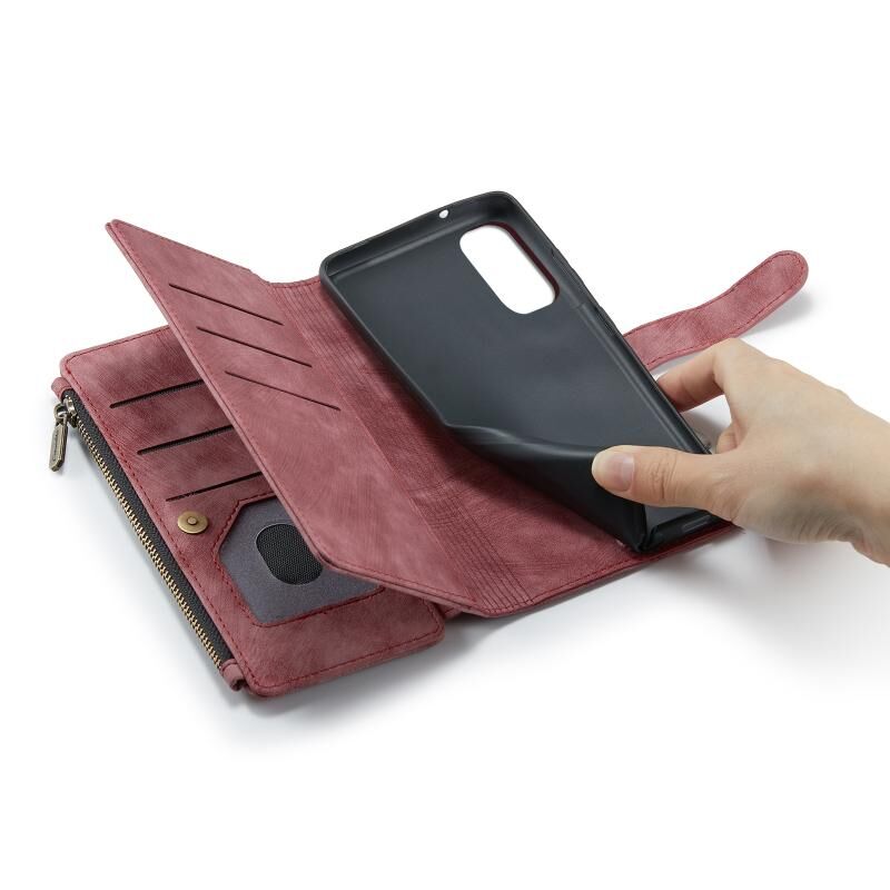 Θήκη για Samsung Galaxy S20 5G CaseMe-C30 PU + TPU Πολυλειτουργική Οριζόντια Δερμάτινη Θήκη με Στήριξη & Θήκη Καρτών & Πορτοφόλι & Θήκη με Φερμουάρ (Καφέ) (Κόκκινο)