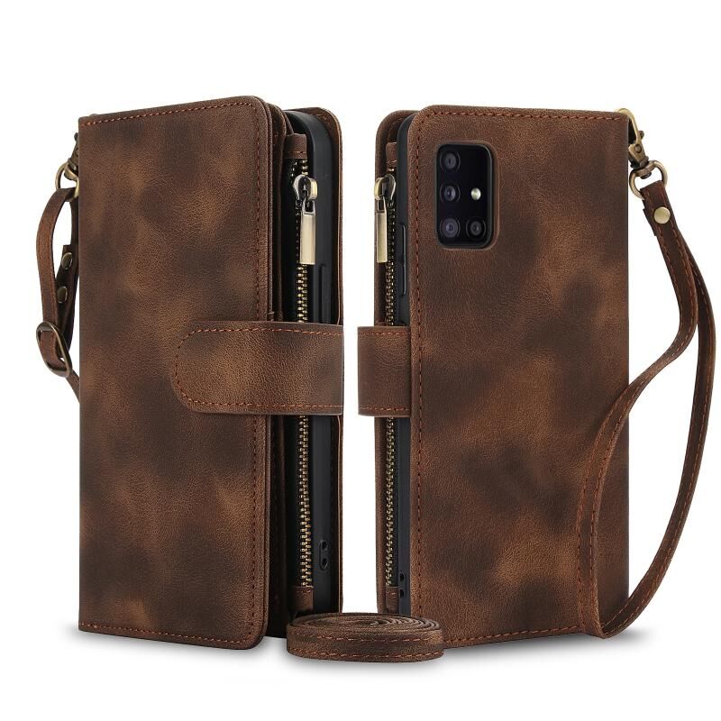 Για Samsung Galaxy S20 + 5G Dream 9-Card φερμουάρ πορτοφόλι RFID δερμάτινη θήκη τηλεφώνου με κορδόνι (καφέ)
