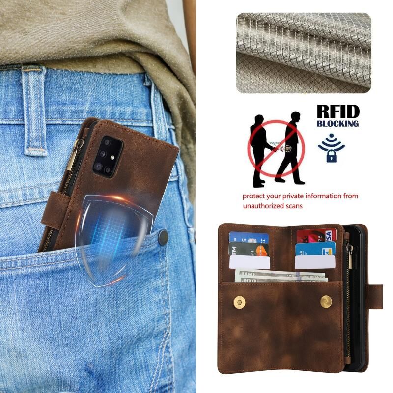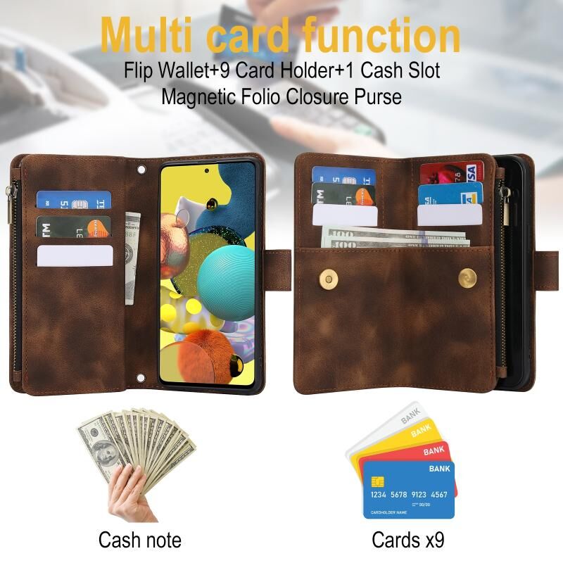 2. Λειτουργία πορτοφολιού πολλαπλών καρτών: 9 υποδοχές για κάρτες και 1 θήκη μετρητών με φερμουάρ για να αποθηκεύετε τις πιστωτικές σας κάρτες, μετρητά ή μικρά χαρτονομίσματα για τις καθημερινές σας ανάγκες.