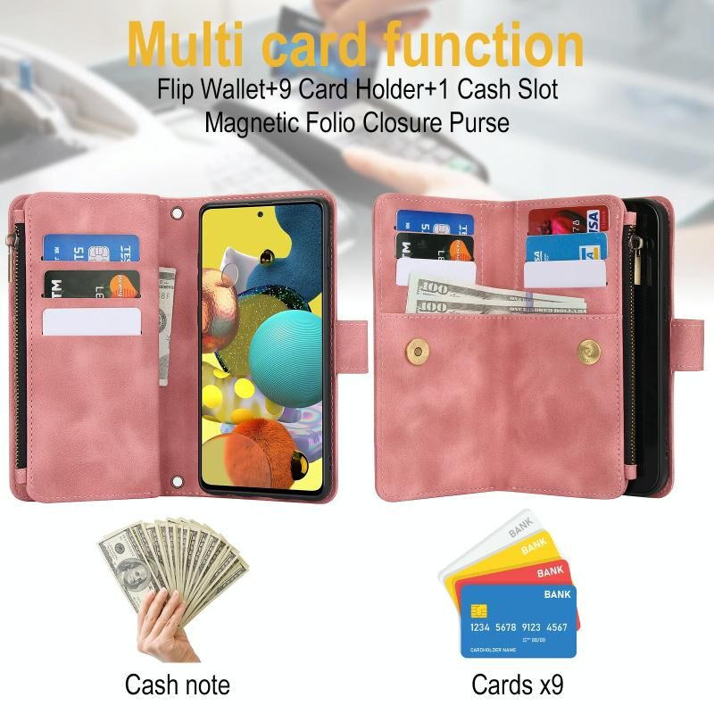 2. Λειτουργία πορτοφολιού πολλαπλών καρτών: 9 υποδοχές για κάρτες και 1 θήκη μετρητών με φερμουάρ για να αποθηκεύετε τις πιστωτικές σας κάρτες, μετρητά ή μικρά χαρτονομίσματα για τις καθημερινές σας ανάγκες.