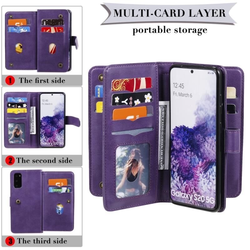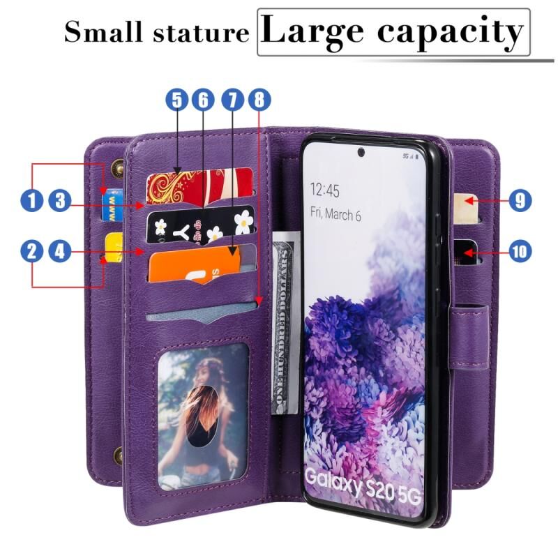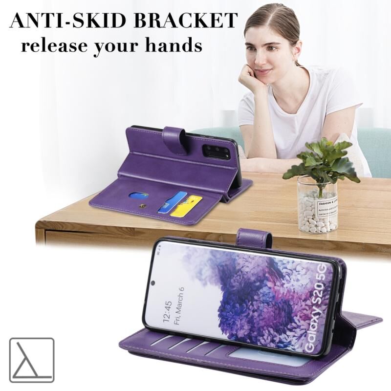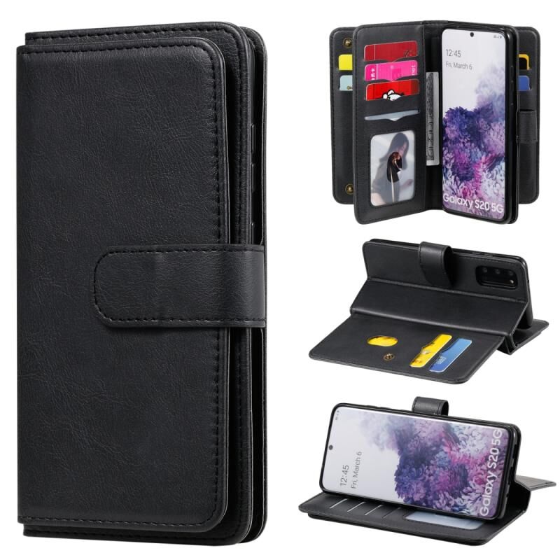 Θήκη Samsung Galaxy S20 5G Πολυλειτουργική Μαγνητική με Αγκράφα από Χαλκό, Οριζόντια, Μονόχρωμη Δερμάτινη με 10 Θήκες για Κάρτες & Πορτοφόλι & Στήριξη & Κορνίζα Φωτογραφιών (Μαύρο)