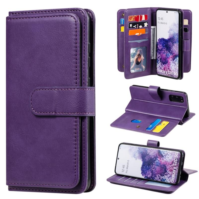 Θήκη Samsung Galaxy S20 5G Πολυλειτουργική Μαγνητική με Αγκράφα από Χαλκό, Οριζόντια, Μονόχρωμη Δερμάτινη με 10 Θήκες για Κάρτες & Πορτοφόλι & Στήριξη & Κορνίζα Φωτογραφιών (Μωβ)
