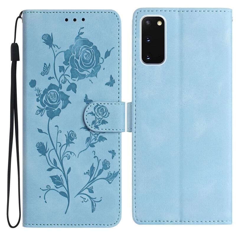 For Samsung Galaxy S20 5G Rose Flower Embossing Pattern Leather Phone Case(Sky Blue)