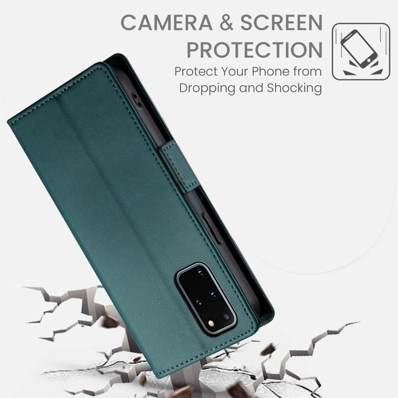 For Samsung Galaxy S20+ 5G Side Buckle Magnetic Frosted Leather Phone Case(Dark Green)