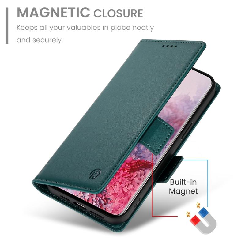 For Samsung Galaxy S20 5G Side Buckle Magnetic Frosted Leather Phone Case(Dark Green)