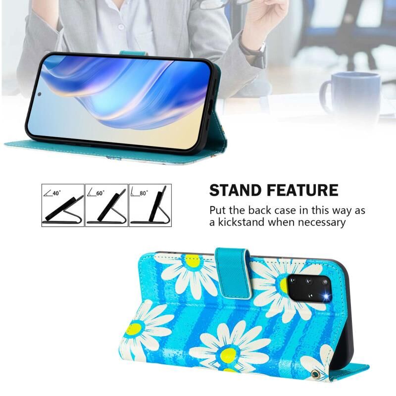 Θήκη τηλεφώνου Samsung Galaxy S20+ από δέρμα με σχέδιο ζωγραφικής και πολύχρωμα χρώματα (Μπλε μαργαρίτα)