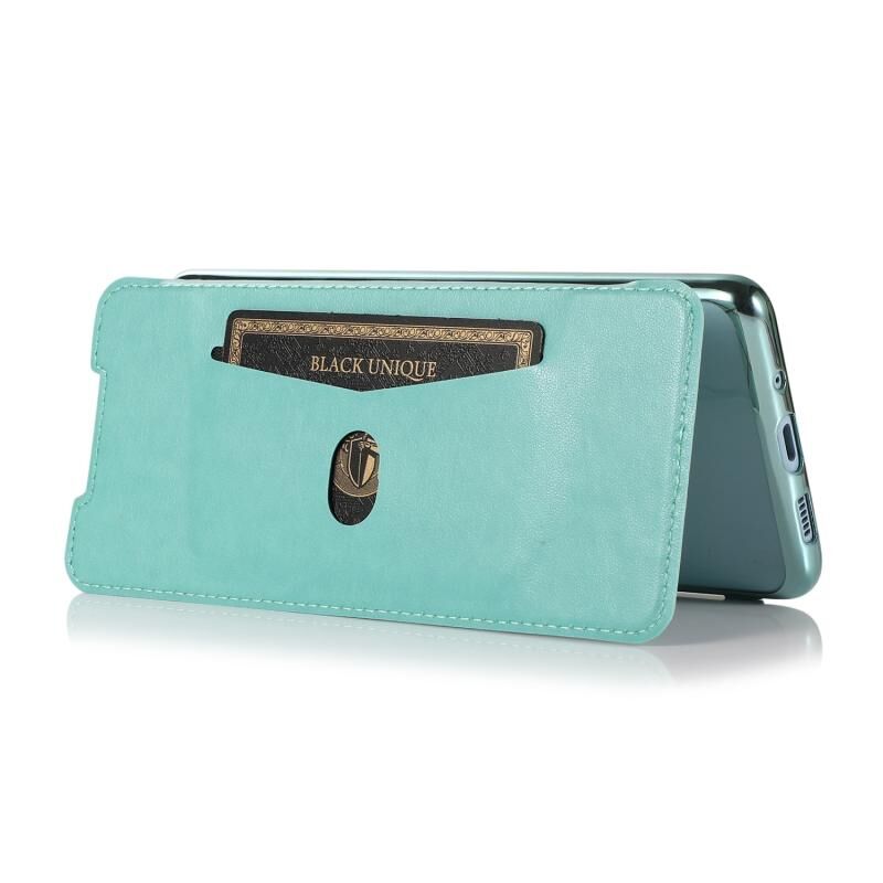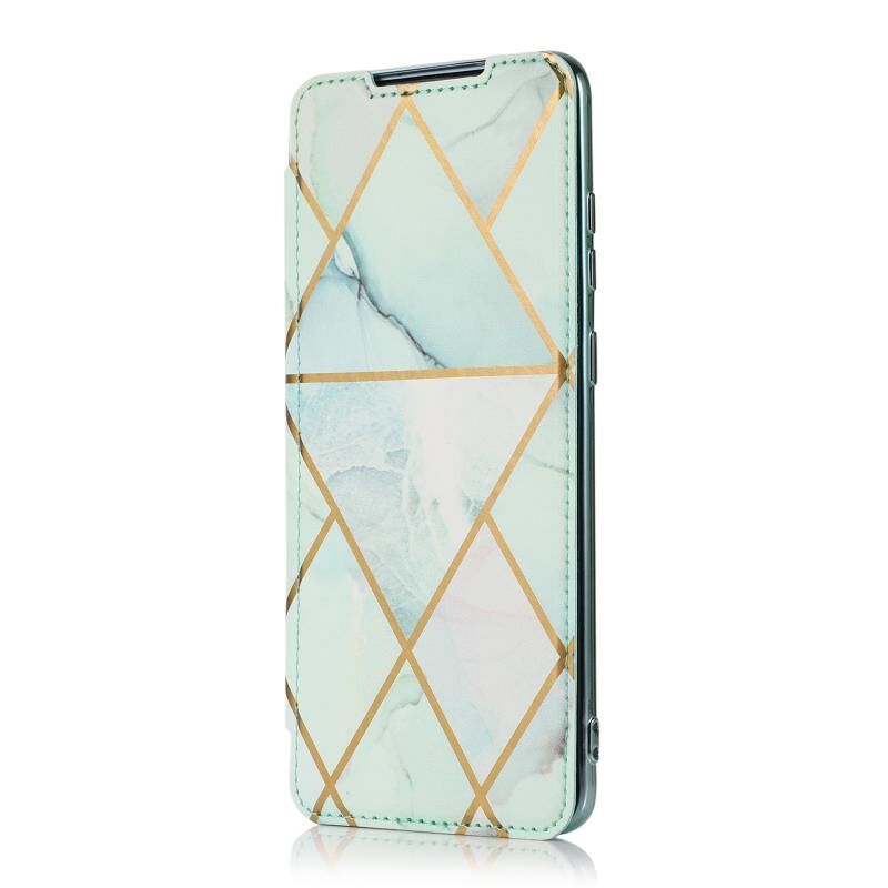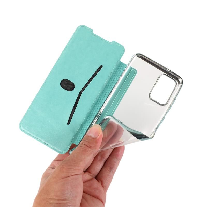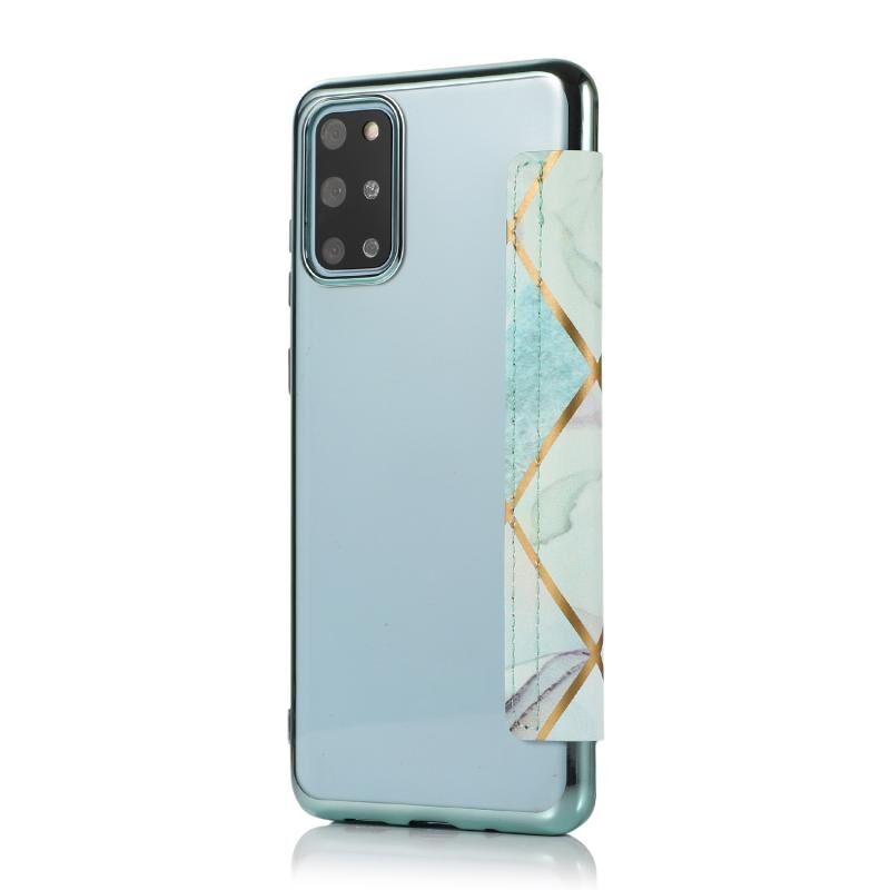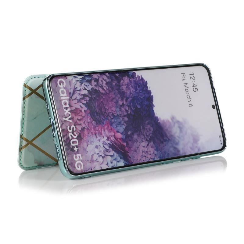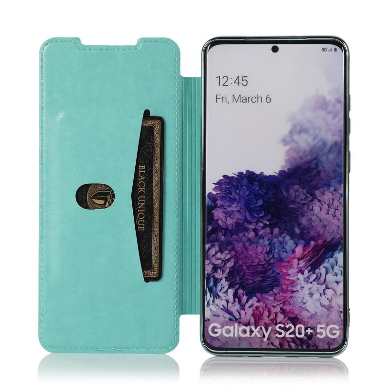 Θήκη δέρματος οριζόντιας αναδίπλωσης PU + TPU με επιμετάλλωση μπρούτζου για Samsung Galaxy S20+ με βάση & υποδοχή κάρτας (Μαύρο)