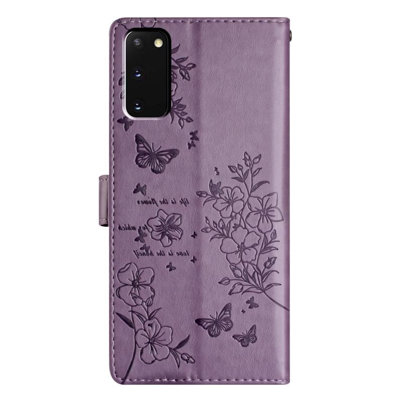 For Samsung Galaxy S20 Butterflies and Flowers Leather Phone Case(Purple)