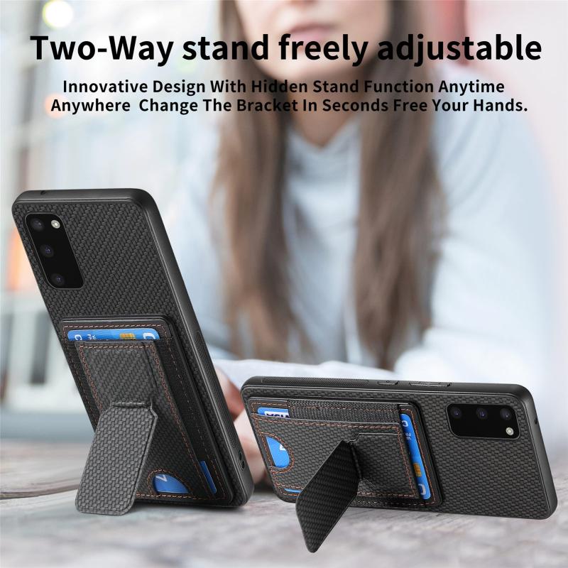 For Samsung Galaxy S20 Carbon Fiber Fold Stand Elastic Card Bag Phone Case(Black)