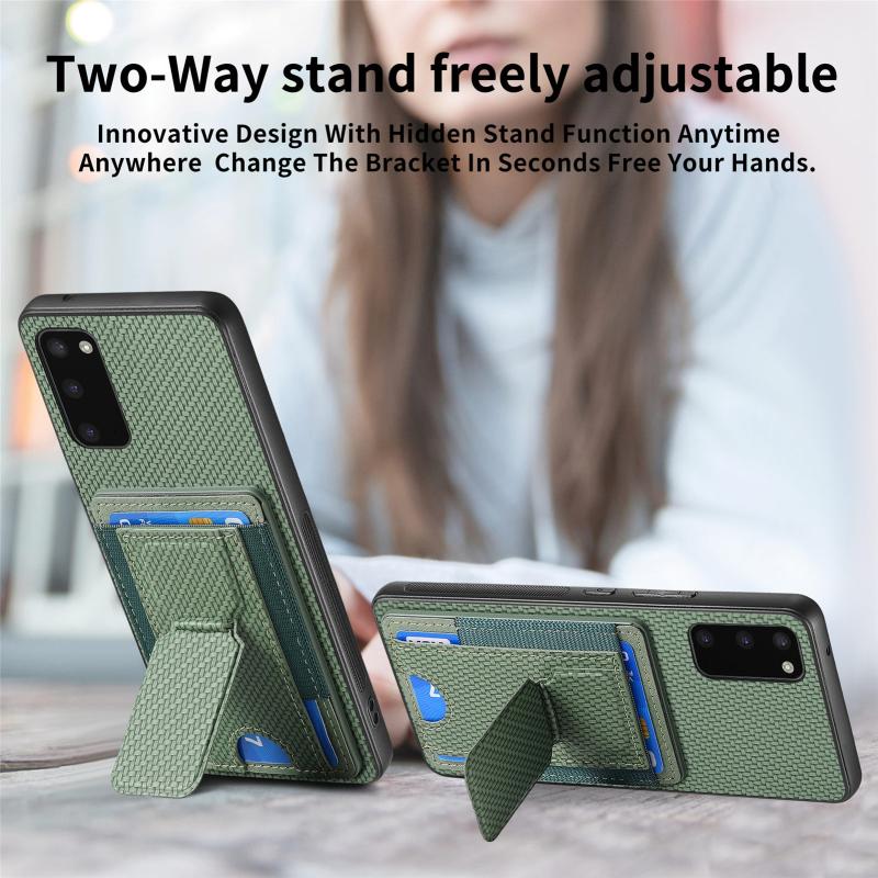 For Samsung Galaxy S20 Carbon Fiber Fold Stand Elastic Card Bag Phone Case(Green)