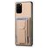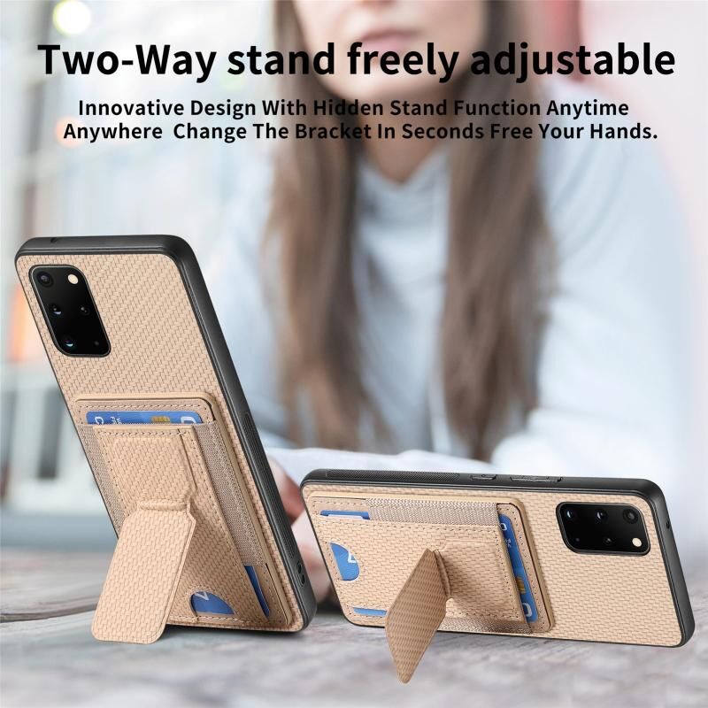 For Samsung Galaxy S20+ Carbon Fiber Fold Stand Elastic Card Bag Phone Case(Khaki)
