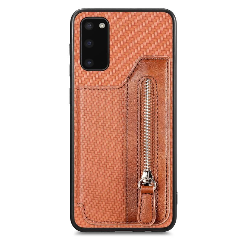 Για Samsung Galaxy S20 Carbon Fiber οριζόντια Flip φερμουάρ πορτοφόλι τηλέφωνο υπόθεση (καφέ)