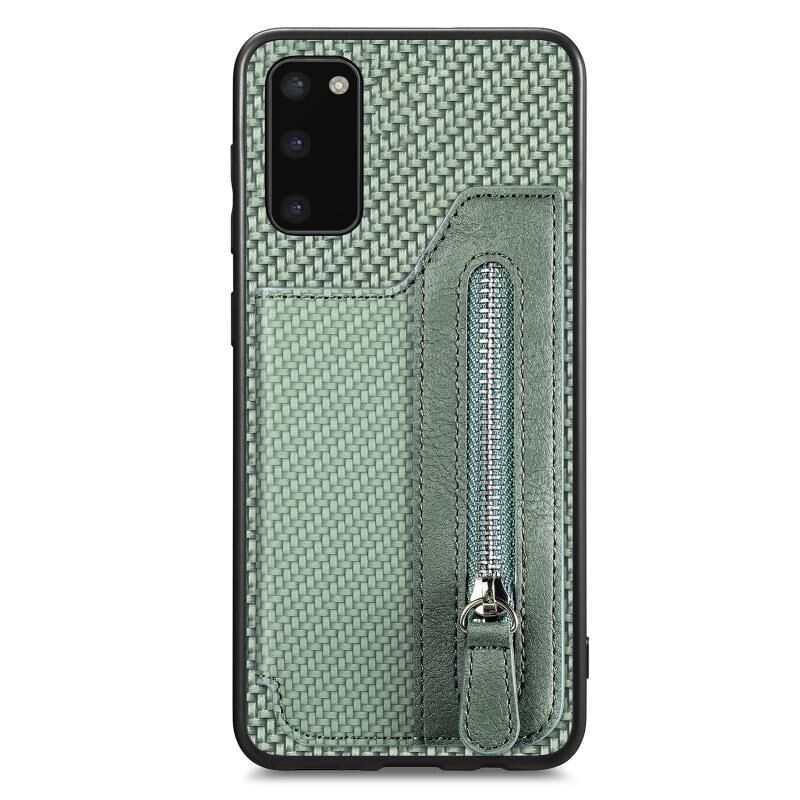 Για Samsung Galaxy S20 + Carbon Fiber οριζόντια Flip φερμουάρ πορτοφόλι τηλέφωνο υπόθεση (πράσινο)