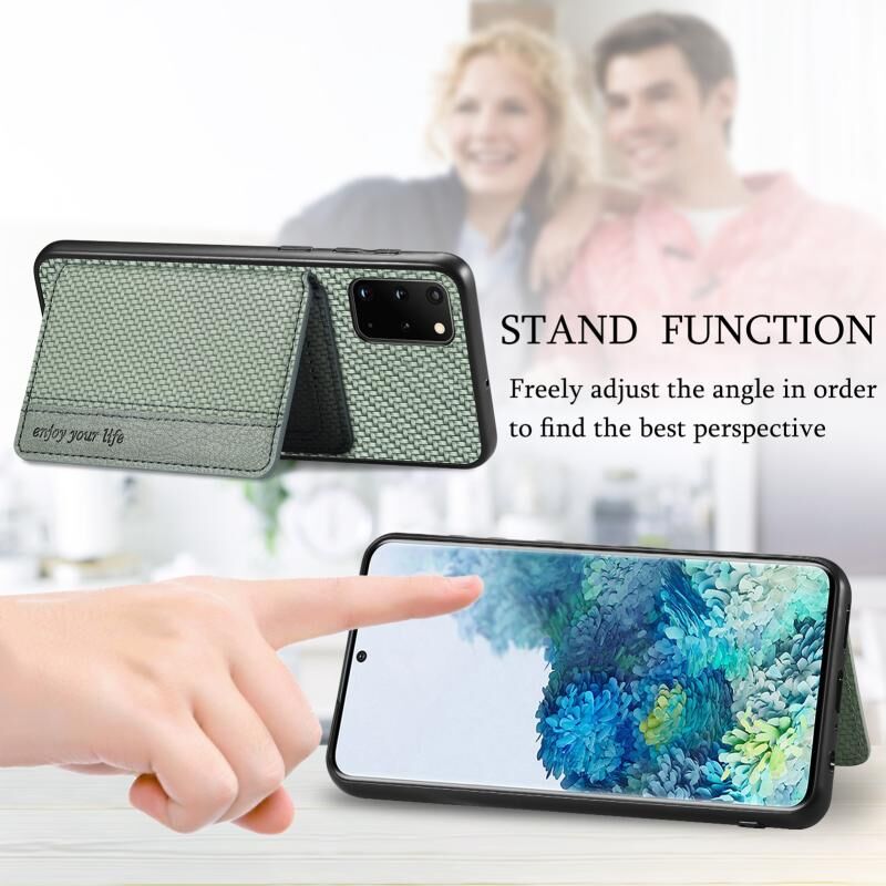 Για Samsung Galaxy S20+ Carbon Fiber μαγνητική κάρτα πορτοφόλι τσάντα θήκη τηλεφώνου (μαύρο)