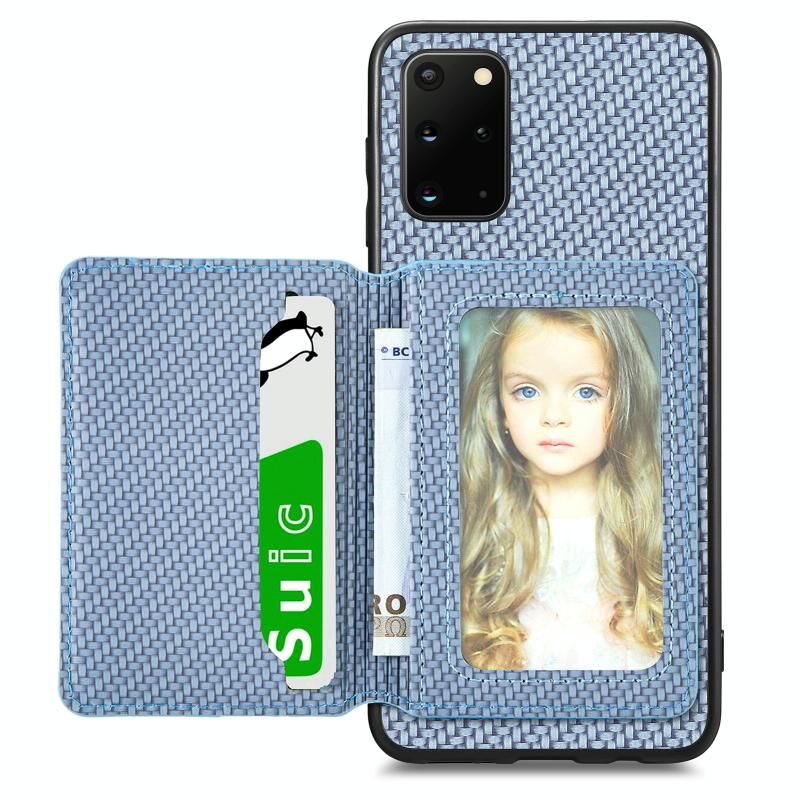 Για Samsung Galaxy S20 + Carbon Fiber μαγνητική κάρτα πορτοφόλι τσάντα θήκη τηλεφώνου (μπλε)