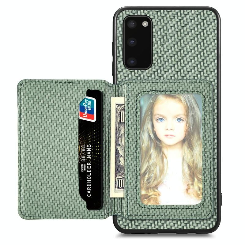 Για Samsung Galaxy S20 Carbon Fiber Μαγνητική κάρτα πορτοφόλι τσάντα θήκη τηλεφώνου (πράσινο)