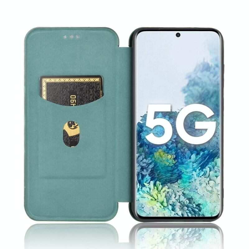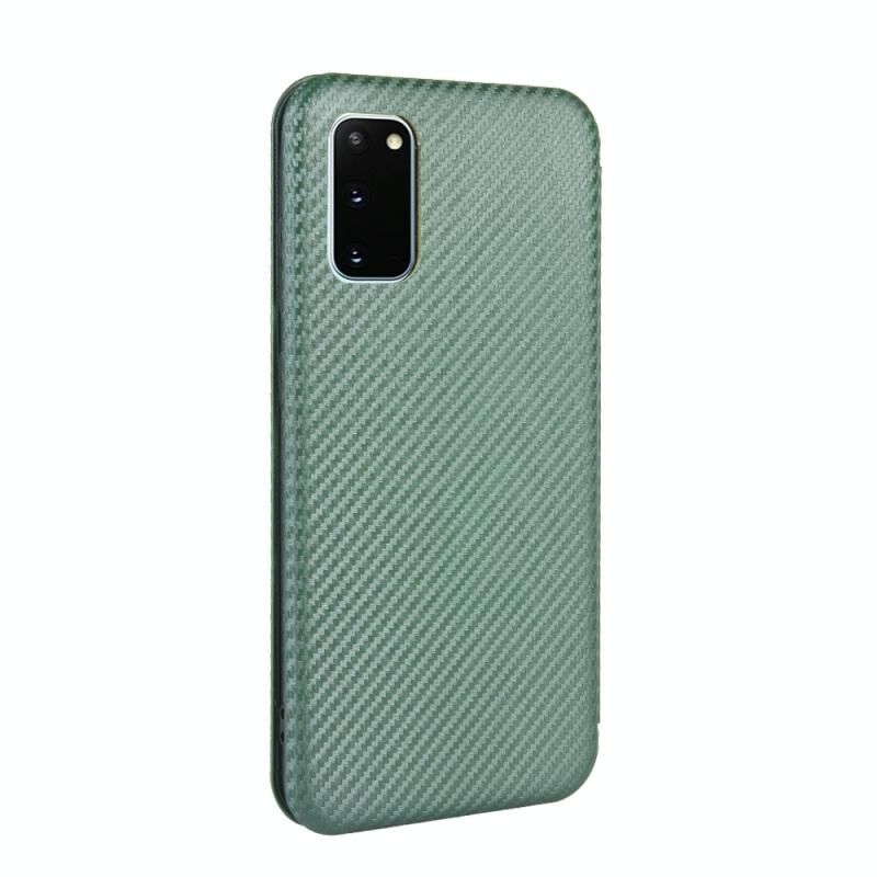 Θήκη για Samsung Galaxy S20 με υφή ανθρακονημάτων, οριζόντια, από TPU + PC + Δερματίνη PU με κορδόνι & θήκη για κάρτες (πράσινο)