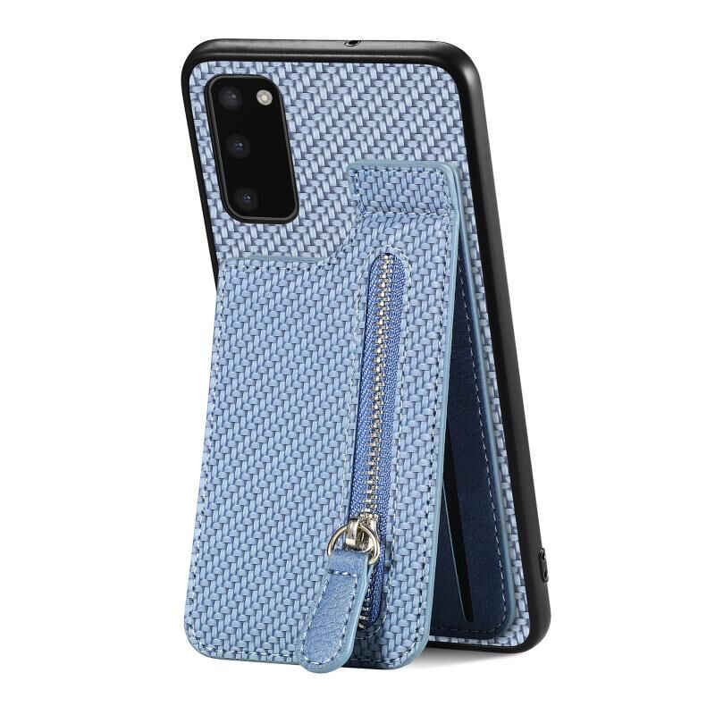 Για Samsung Galaxy S20 Carbon Fiber Κάθετη Flip φερμουάρ Wallet υπόθεση τηλεφώνου (μπλε)