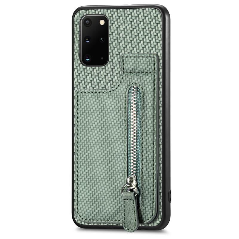 Για Samsung Galaxy S20 + Carbon Fiber Κάθετη Flip φερμουάρ πορτοφόλι τηλέφωνο υπόθεση (πράσινο)