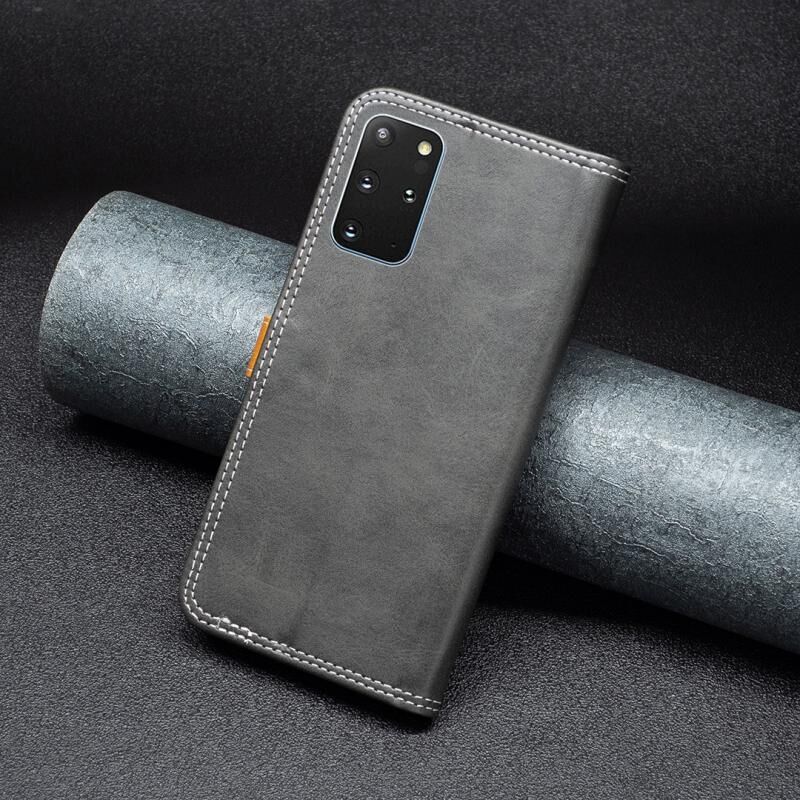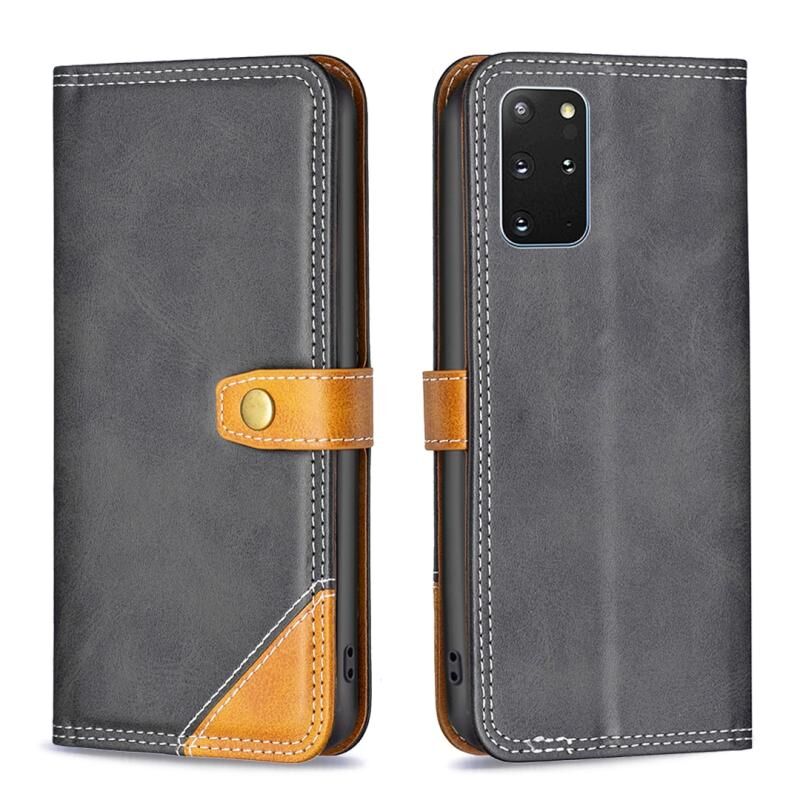 Θήκη τηλεφώνου Samsung Galaxy S20+ από δέρμα με διπλή ραφή και αντιστοίχιση χρώματος (Μαύρο)