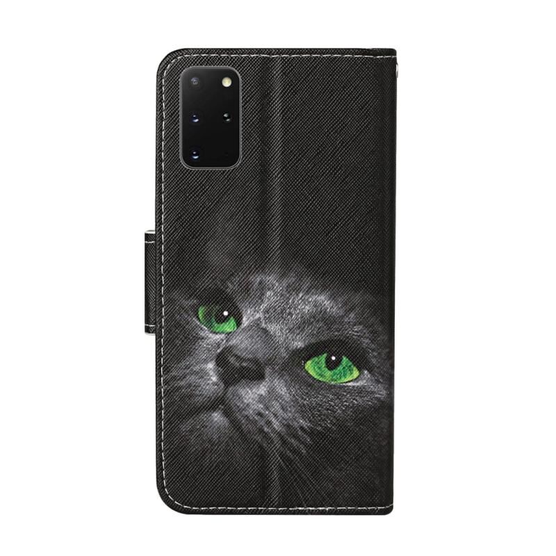 Θήκη δέρματος οριζόντιας αναδίπλωσης με σχέδιο έγχρωμης ζωγραφικής για Samsung Galaxy S20+ με βάση στήριξης & υποδοχές καρτών & πορτοφόλι & κορδόνι (Μαύρη Γάτα)