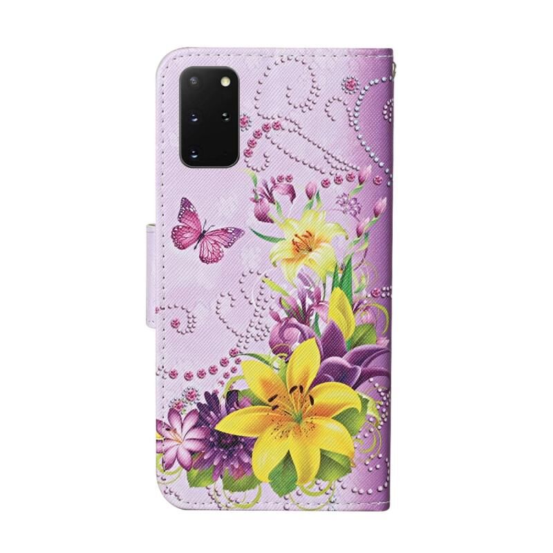 Θήκη δέρματος οριζόντιας αναδίπλωσης με σχέδιο έγχρωμης ζωγραφικής για Samsung Galaxy S20+ με βάση στήριξης & υποδοχές καρτών & πορτοφόλι & κορδόνι (Μαύρη Γάτα)