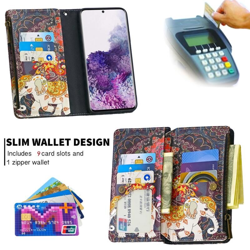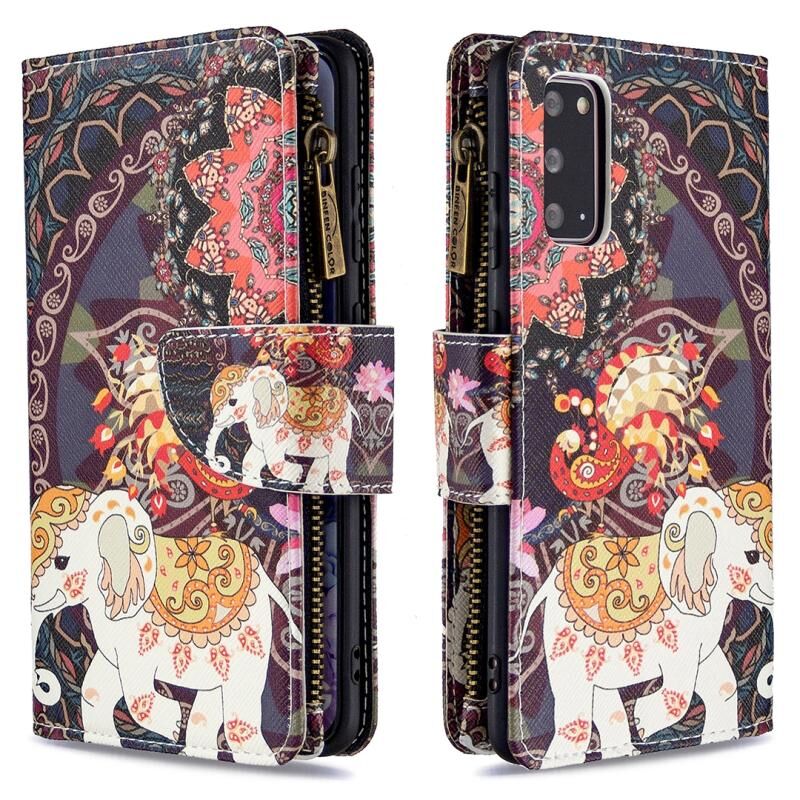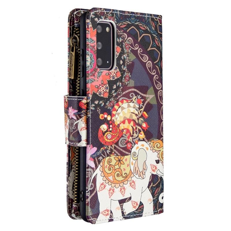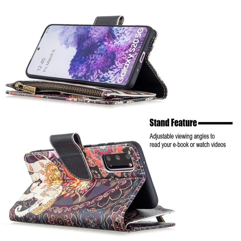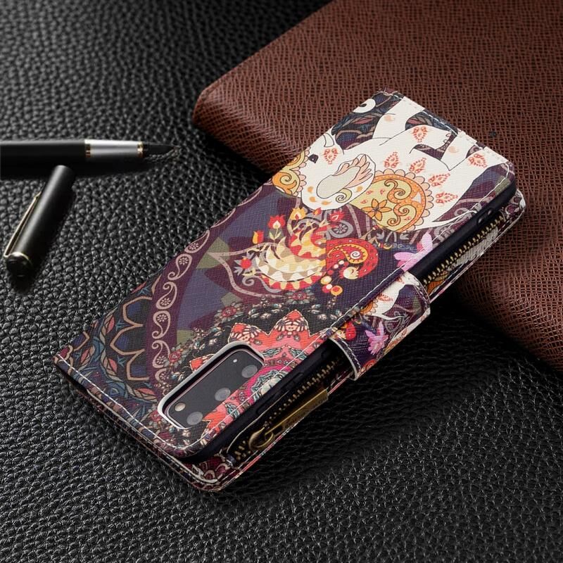 Θήκη Samsung Galaxy S20 Δερμάτινη Οριζόντια με Φερμουάρ, Σχέδιο με Χρώματα και Ζωγραφική, με Θήκη & Θήκες για Κάρτες & Πορτοφόλι (Κόκκινο)
