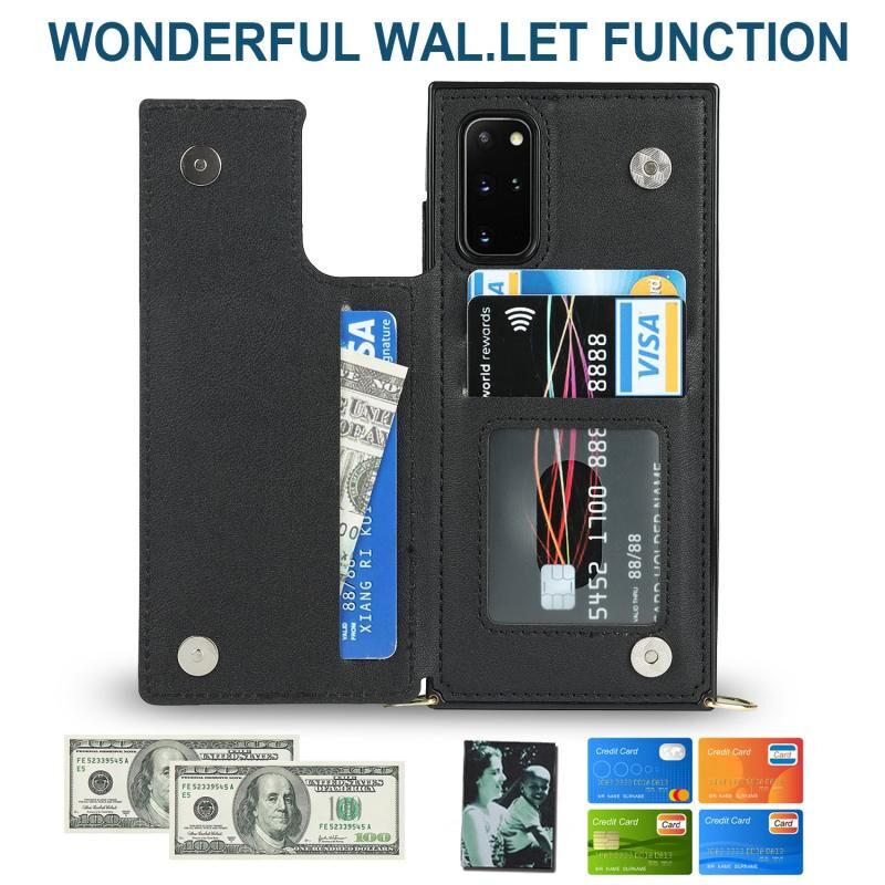 Για το Samsung Galaxy S20+ Cross-body Square Double Buckle Flip Card Bag TPU+PU Case με υποδοχές για κάρτες & πορτοφόλι & φωτογραφία & λουράκι (Μαύρο)