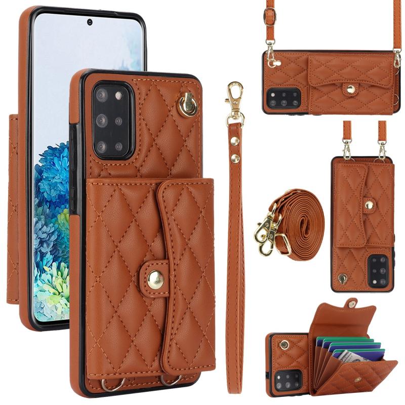 For Samsung Galaxy S20 Crossbody Rhombic Horizontal Wallet Leather Phone Case(Brown)