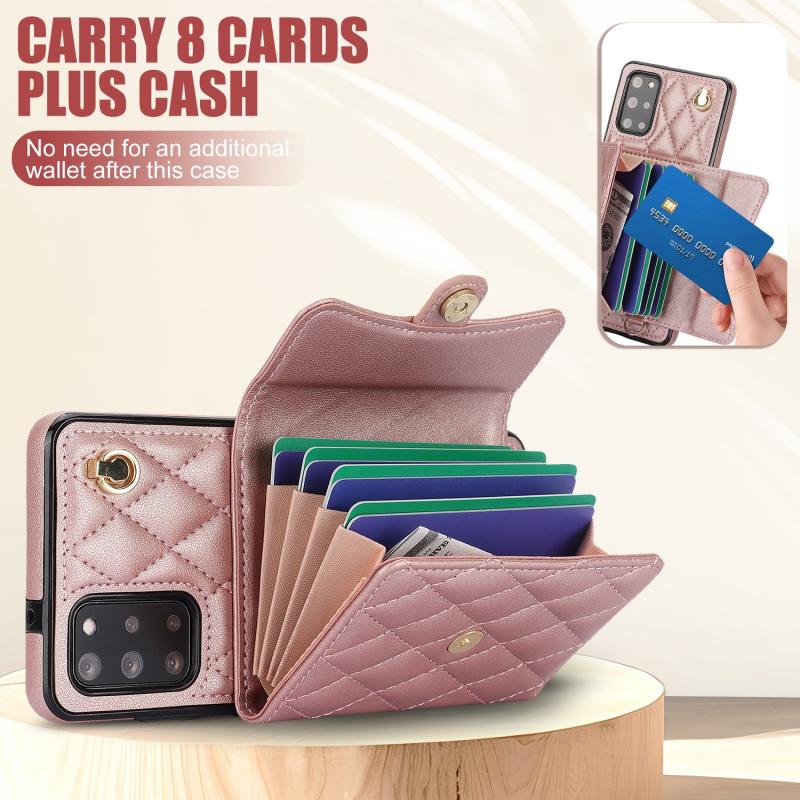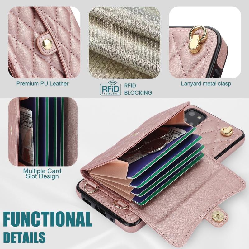 For Samsung Galaxy S20+ Crossbody Rhombic Horizontal Wallet Leather Phone Case(Rose Gold)