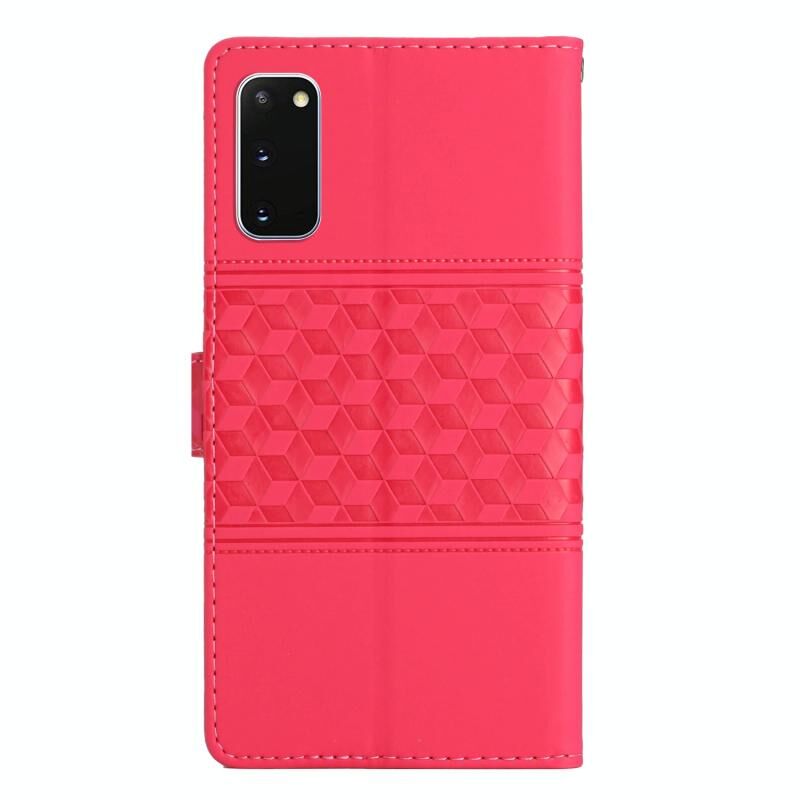 Για Samsung Galaxy S20 Diamond ανάγλυφο δέρμα αίσθηση δέρμα τηλέφωνο υπόθεση με κορδόνι (Κόκκινο)