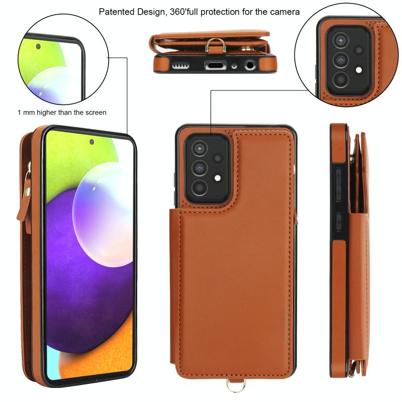 For Samsung Galaxy S20+ Double Flap Zipper RFID Leather Phone Case with Short Lanyard(Brown)