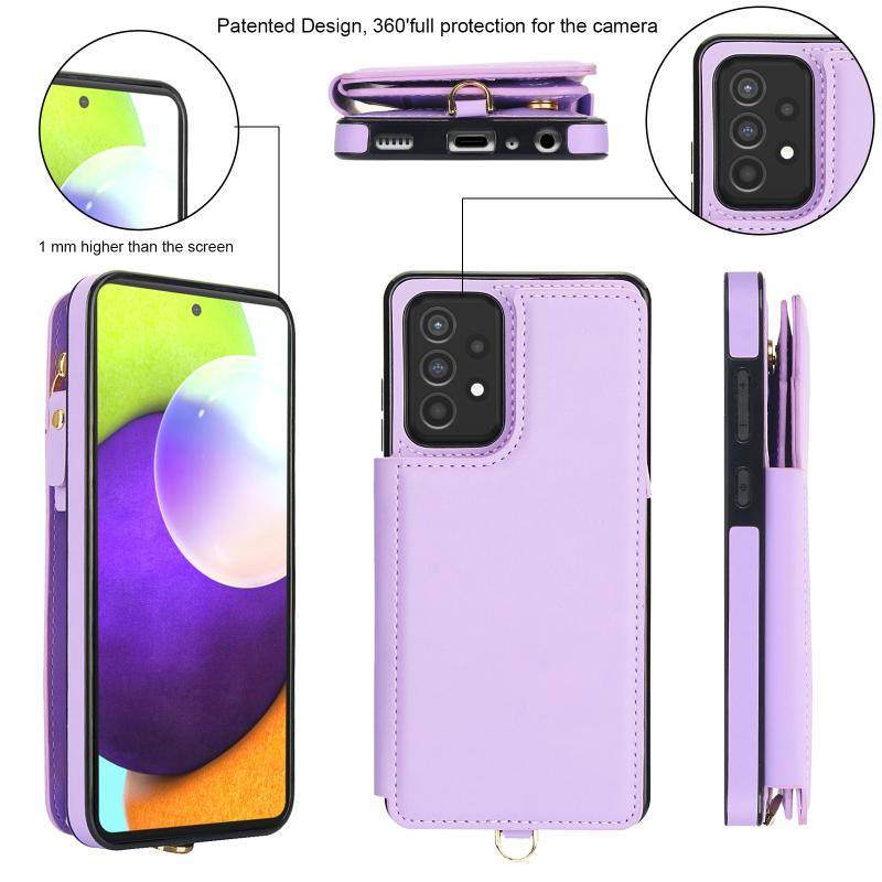 For Samsung Galaxy S20 Double Flap Zipper RFID Leather Phone Case with Short Lanyard(Light Purple)
