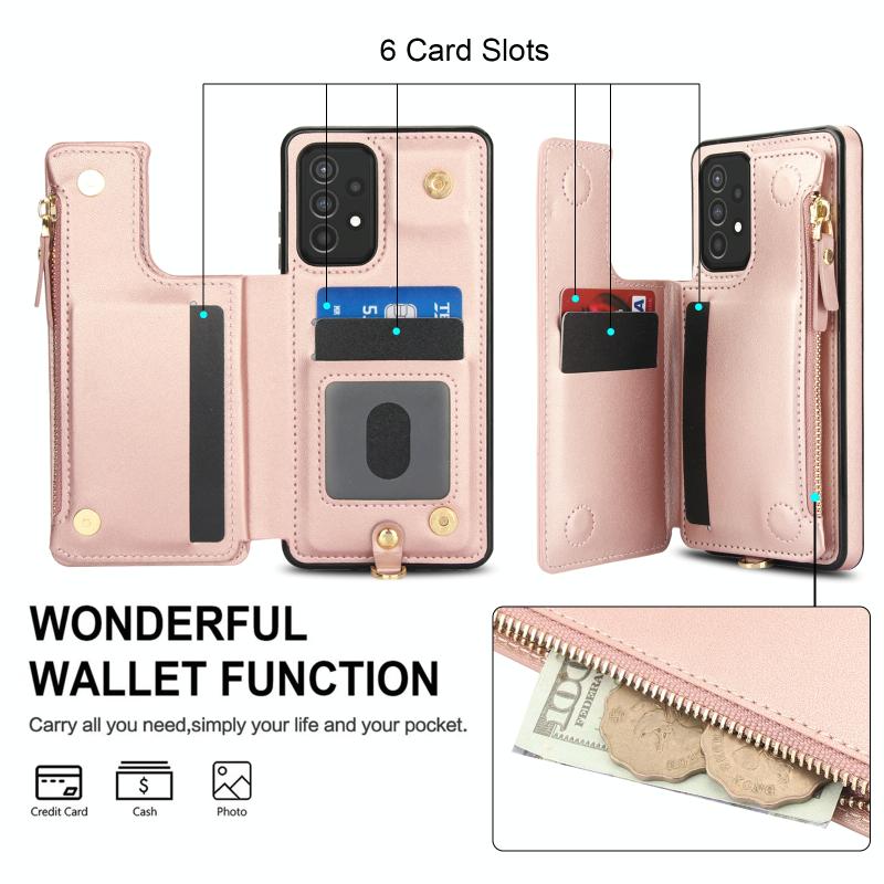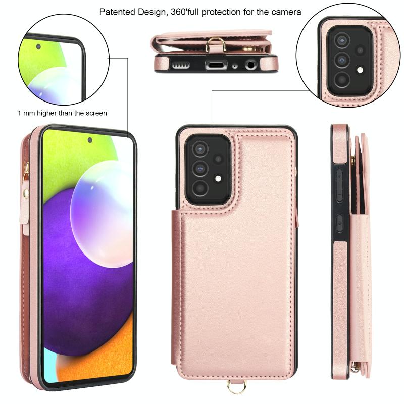 For Samsung Galaxy S20+ Double Flap Zipper RFID Leather Phone Case with Short Lanyard(Rose Gold)
