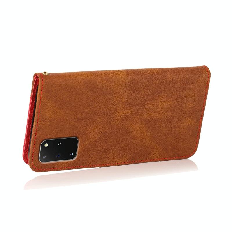 Θήκη τηλεφώνου δερμάτινη με διπλή ραφή για Samsung Galaxy S20+ (Καφέ-κόκκινο)