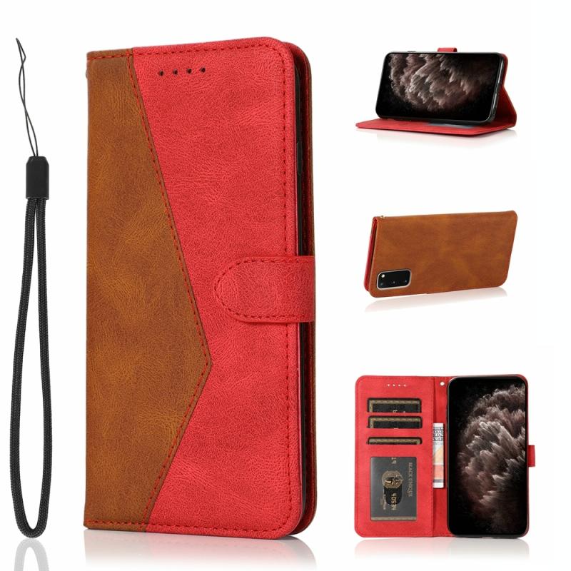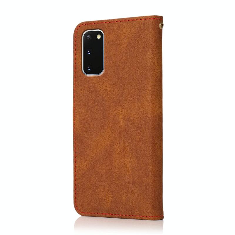 Θήκη τηλεφώνου δερμάτινη με διπλή ραφή για Samsung Galaxy S20 (Καφέ-κόκκινο)
