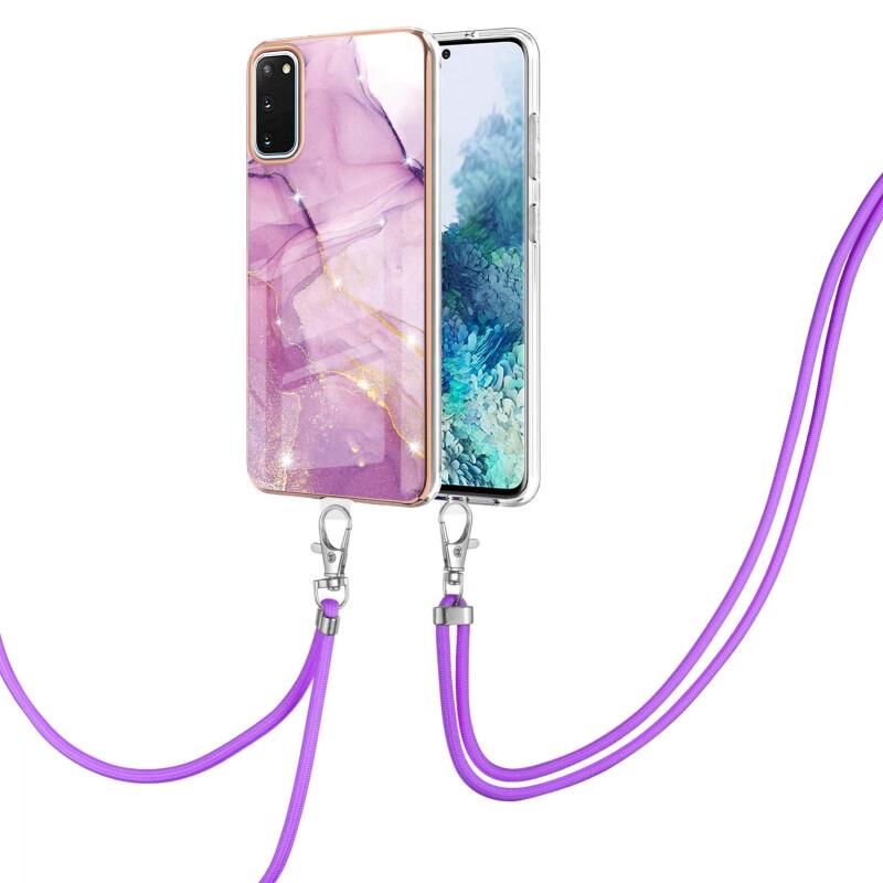 Θήκη για Samsung Galaxy S20 με Γαλβανισμό, Μοτίβο Μαρμάρου IMD, Αντικραδασμική από TPU με Λουρί Λαιμού (Μωβ 002)