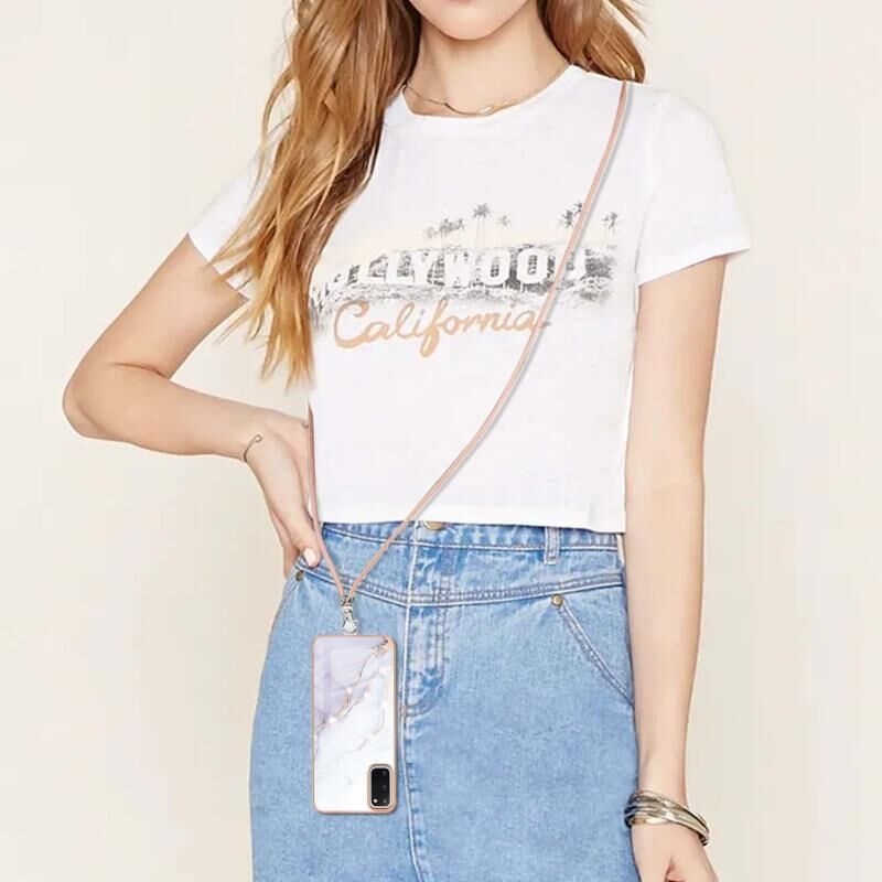 Θήκη για Samsung Galaxy S20 με Γαλβανισμό, Μοτίβο Μαρμάρου IMD, Αντικραδασμική από TPU με Λουρί Λαιμού (Μωβ 002)