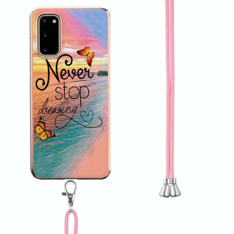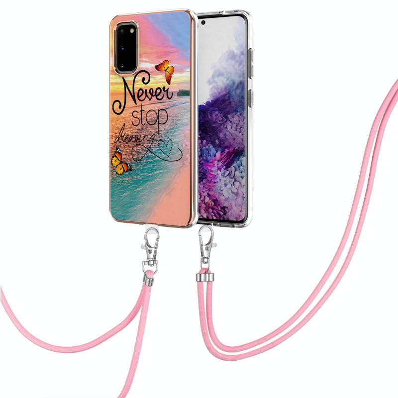 For Samsung Galaxy S20 Electroplating Pattern IMD TPU Shockproof Case with Neck Lanyard(Dream Chasing Butterfly)
