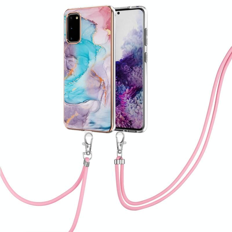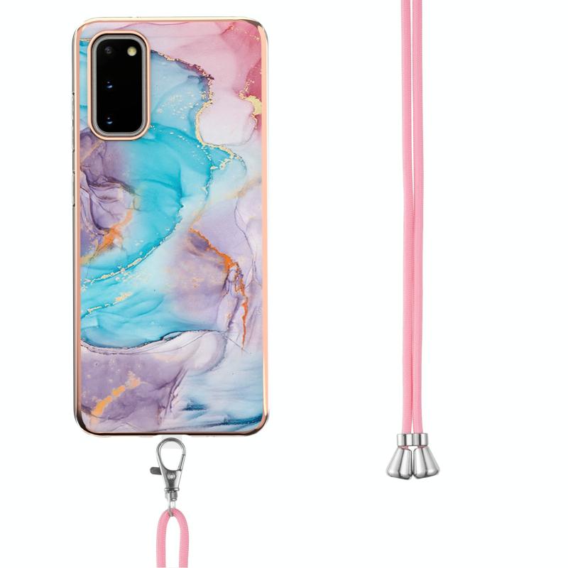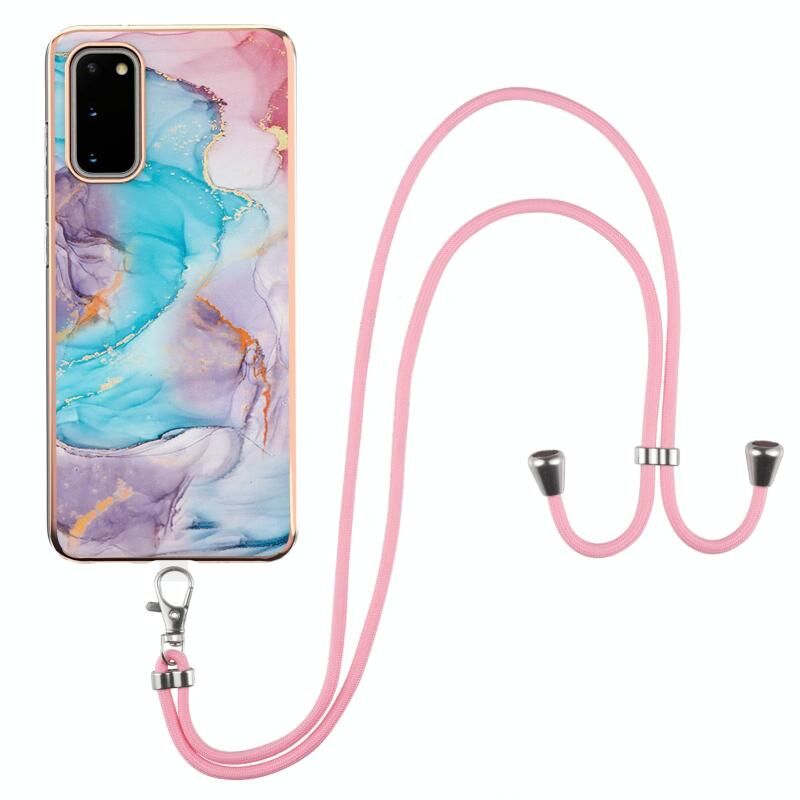 For Samsung Galaxy S20 Electroplating Pattern IMD TPU Shockproof Case with Neck Lanyard(Milky Way Blue Marble)