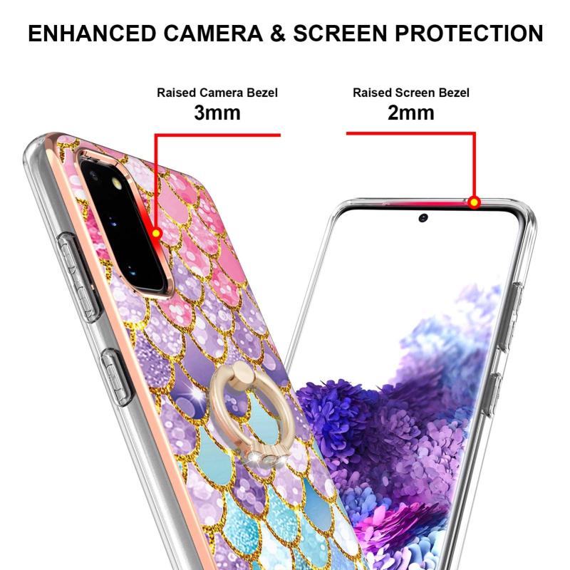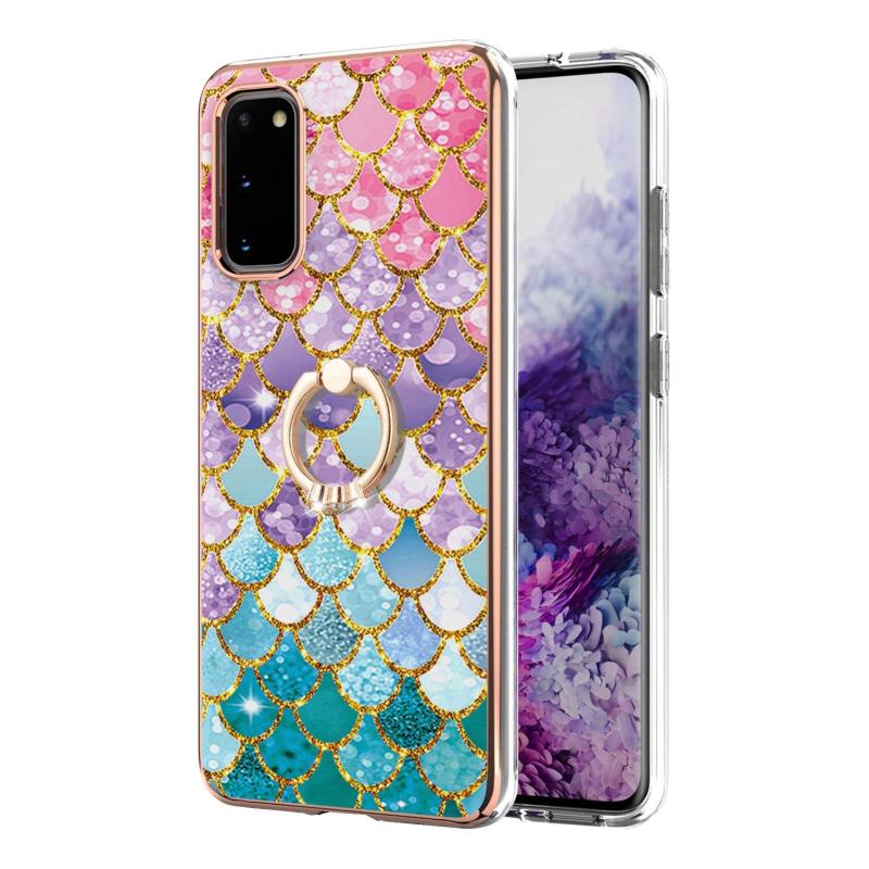 For Samsung Galaxy S20 Electroplating Pattern IMD TPU Shockproof Case with Rhinestone Ring Holder(Colorful Scales)