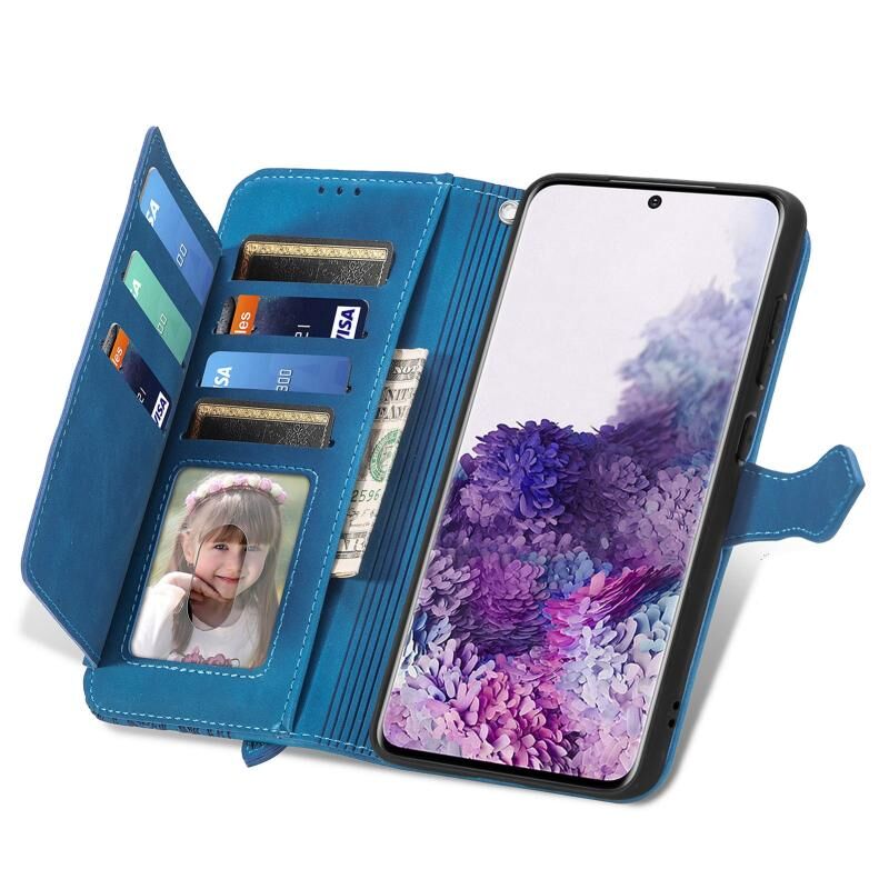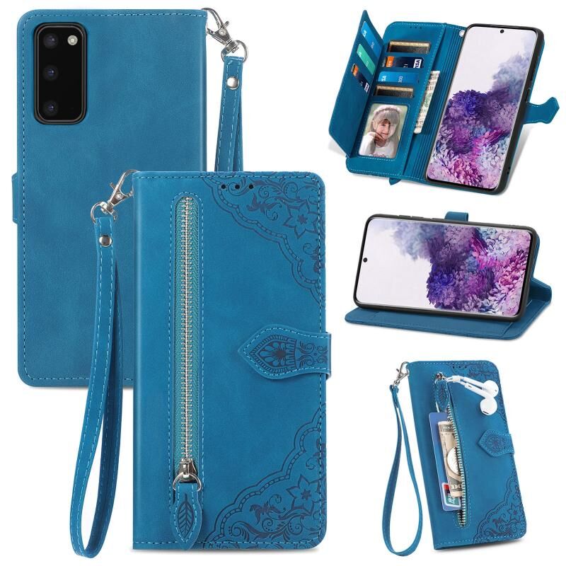 Για Samsung Galaxy S20 ανάγλυφο λουλούδι φερμουάρ δερμάτινη θήκη τηλεφώνου (μπλε)