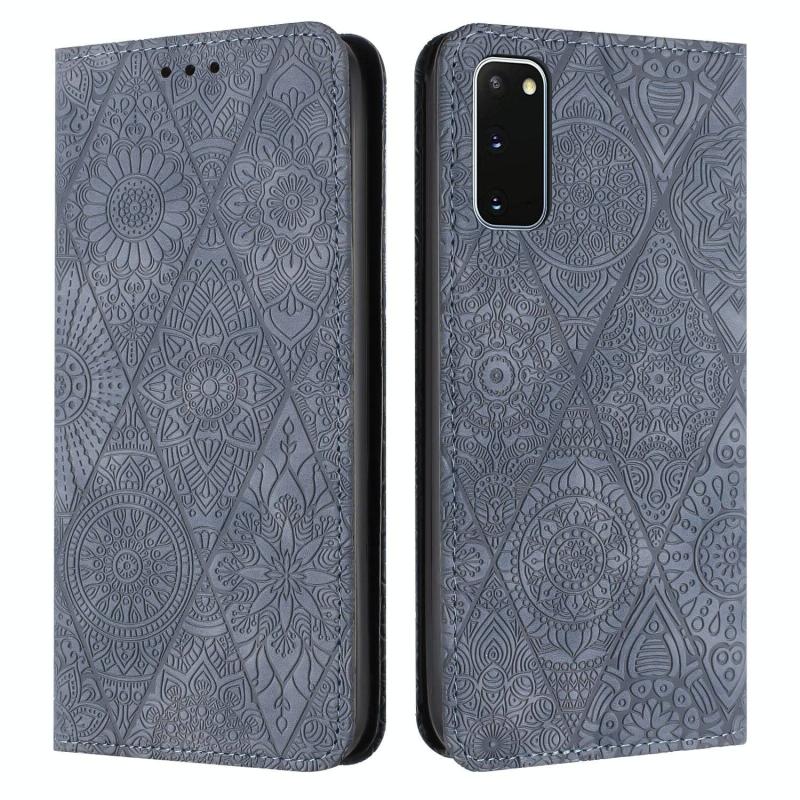 Θήκη τηλεφώνου Samsung Galaxy S20+ από δέρμα με έθνικ ανάγλυφο και απορρόφηση (Γκρι)