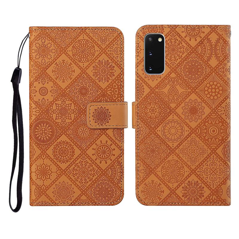 Θήκη Samsung Galaxy S20 Εθνοτικό Στυλ, ανάγλυφο σχέδιο, οριζόντια, δερμάτινη με βάση & θήκες καρτών & πορτοφόλι & κορδόνι (Καφέ)