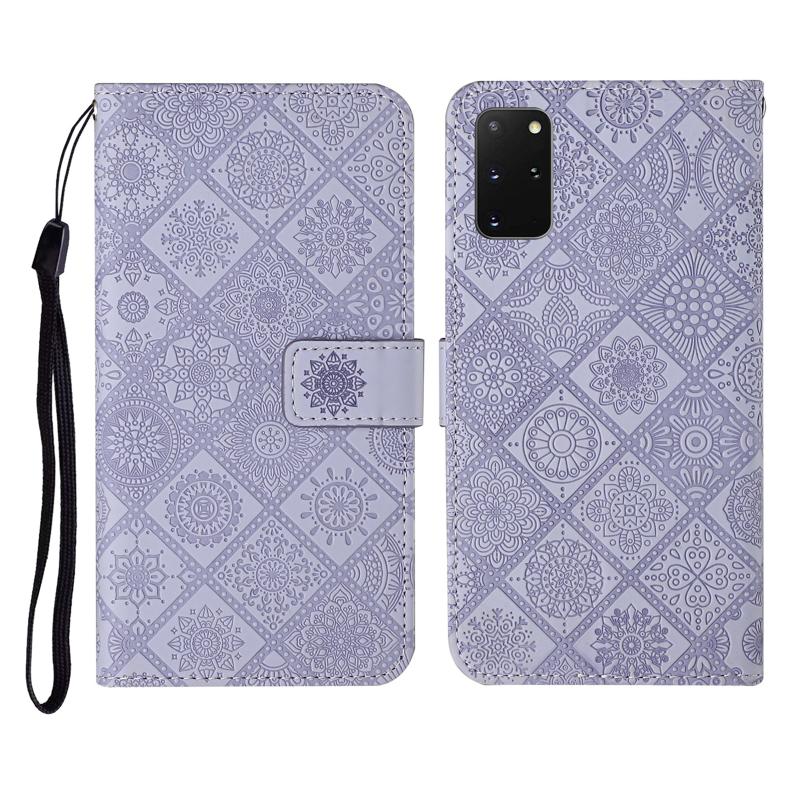 For Samsung Galaxy S20+ Ethnic Style Embossed Pattern Horizontal Flip Leather Case with Holder & Card Slots & Wallet & Lanyard(Purple)