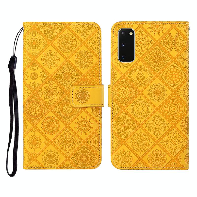 Θήκη Samsung Galaxy S20 Εθνοτικό Στυλ, ανάγλυφο σχέδιο, οριζόντια, δερμάτινη με βάση & θήκες καρτών & πορτοφόλι & κορδόνι (Κίτρινο)