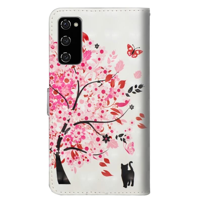 Θήκη για Samsung Galaxy S20 FE, με τρισδιάστατο σχέδιο, οριζόντια αναδίπλωση, κατασκευασμένη από TPU + Δερματίνη PU, με βάση στήριξης, πορτοφόλι, θήκες για κάρτες και κορδόνι (Γάτα και Δέντρο).