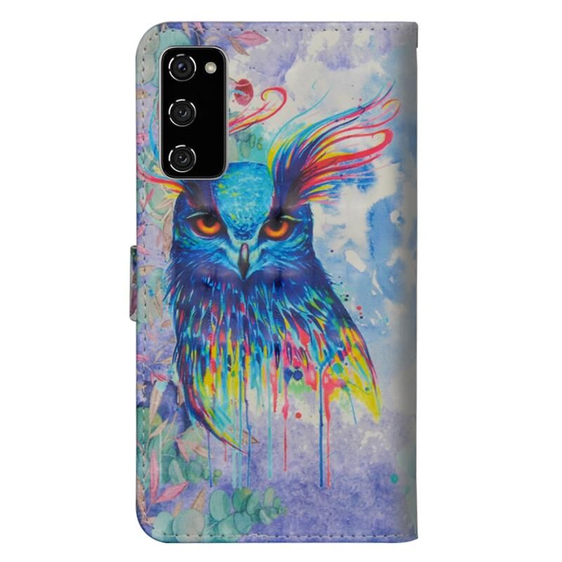 Θήκη για Samsung Galaxy S20 FE, με τρισδιάστατο σχέδιο, οριζόντια αναδίπλωση, κατασκευασμένη από TPU + Δερματίνη PU, με βάση στήριξης, πορτοφόλι, θήκες για κάρτες και κορδόνι (Πολύχρωμη Κουκουβάγια)