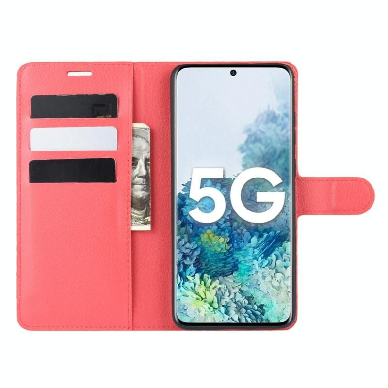 Για Samsung Galaxy S20 FE 4G / 5G Litchi Υφή οριζόντια Flip προστατευτική θήκη με θήκη & υποδοχές για κάρτες & πορτοφόλι (κόκκινο)